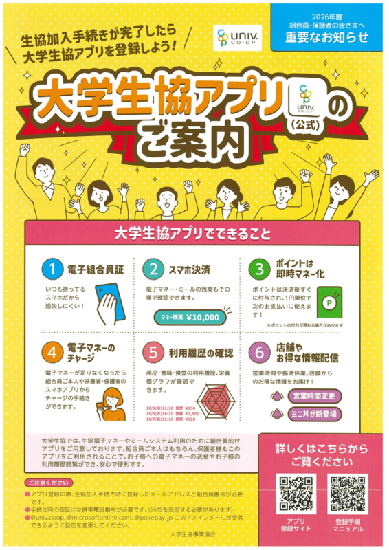 [2026年入学の方]生協ご利用前までに「大学生協アプリ」のご登録をお願いします (2026年4月2日)